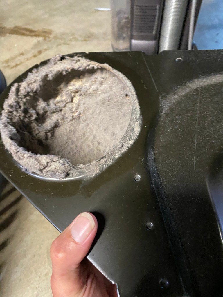The solution to this is simple, and it’s not to buy a new dryer. A couple hours, some brushes and a vacuum cleaner will typically get your dryer working just like new. This service, along with our electric water heater maintenance service are among the most common add-ons clients choose when I am coming in for other small jobs. The pictures below are from a 3 year old dryer serving a family of four.